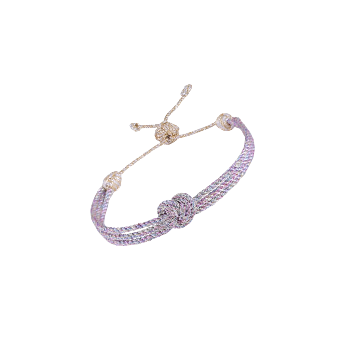 Mediterrán elegancia és kézműves finomság. Fedezd fel a Maya Heart karkötőt, amely a mediterrán elegancia és a finom kézműves megmunkálás tökéletes ötvözete! A karkötő különlegességét a szív formájú csomó adja, amely a szeretetet és az igényes dizájnt szimbolizálja. A arany szálak harmonikusan keverednek arany és ezüst árnyalatokkal, valamint lágy rózsaszín és púderkék fonalakkal, így a karkötő minden szögből fénylő, kifinomult színvilágot kínál. Az aprólékos csomózás és a csillogó fonalak minden szettnek finom bájt és nőies ragyogást adnak. Viseld a Maya Heart karkötőt, ha szereted a romantikus, kifinomult ékszereket, amelyek egyszerre mutatják a stílust, a kreativitást és a mediterrán életérzést.