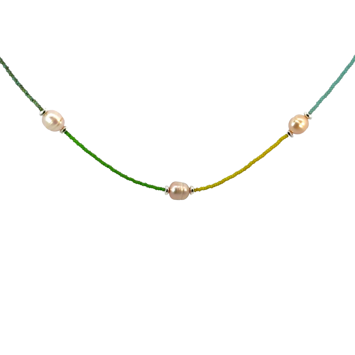 Add hozzá a természet ihlette ragyogást a mindennapjaidhoz a Green Serenity nyaklánccal, amely 5 gyönyörű fehér édesvízi gyöngyből és 4 különböző zöld árnyalatú design gyöngyből áll! Ez a finom, mégis karakteres ékszer tökéletesen ötvözi a friss zöld tónusokat a gyöngyök kifinomult fényével, így eleganciát és természetes energiát sugároz egyszerre. A Green Serenity nyaklánc ideális választás fiatalos, trendi nőknek, akik szeretnék stílusukat egyedi, természetközeli kiegészítővel kiemelni.