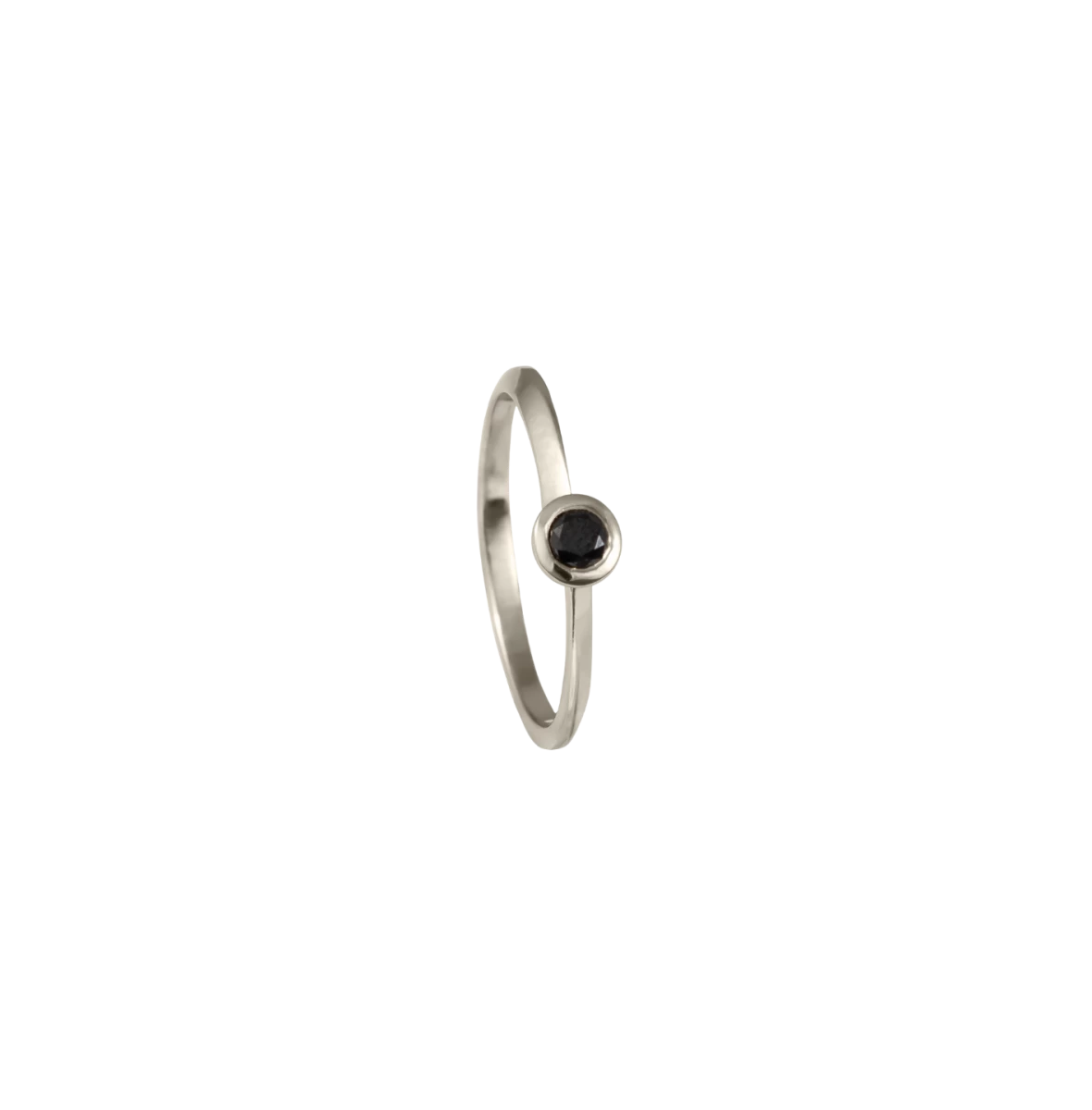 Fekete Brill Köves Button Fehér Arany 14K Gyűrű