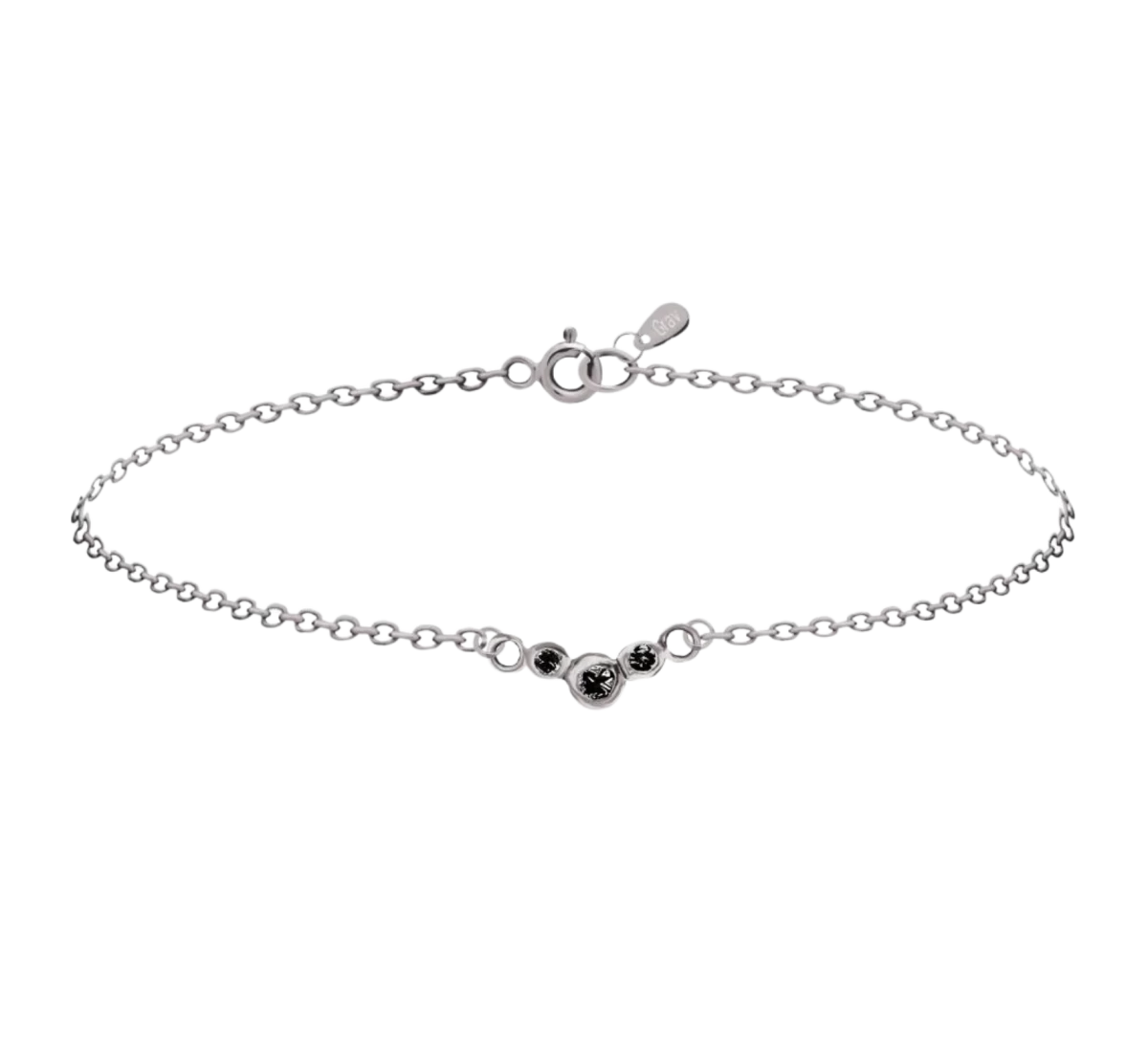 Ez a karkötő maga az időtlen elegancia, a három fekete cirkónia kő ragyogóvá varázsol minden alkalmat. A kézzel megmunkált finom karkötő elegáns kiegészítő, hiszen minden szettet feldob. Válassz mellé köves nyakláncainkból és alkosd meg egyedi stílusod. A kövek mérete 1 mm - 2.5 mm.
