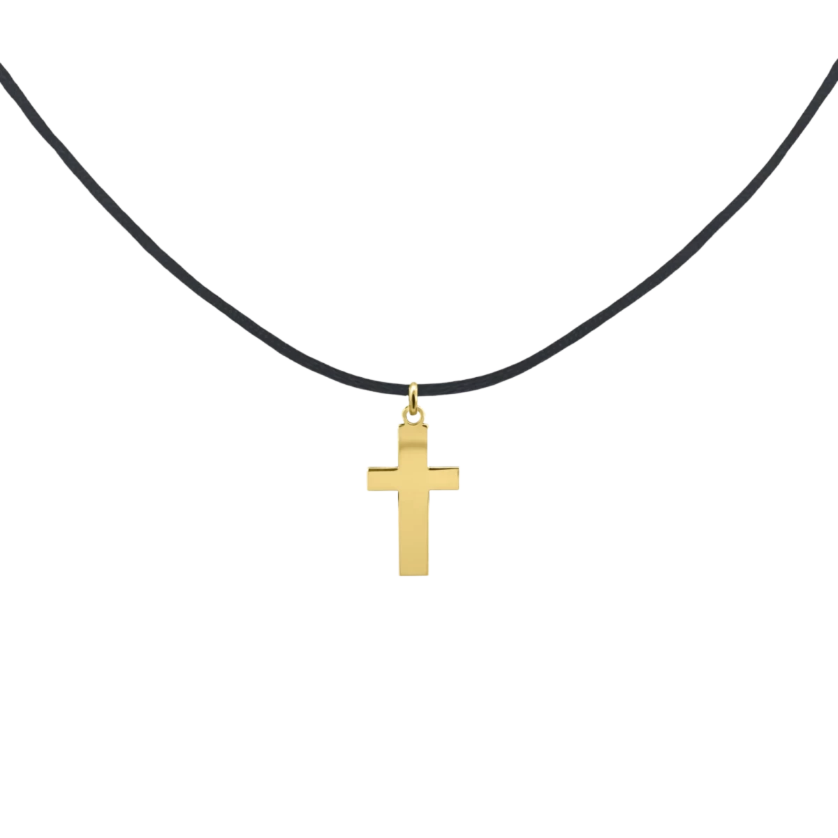 Vastag fonalra fűzött, kereszt formájú medál 14 karátos sárgaarany zárral. Férfi kollekciónk nagy népszerűségnek örvendő darabja. A medál mérete: 12x20 mm.