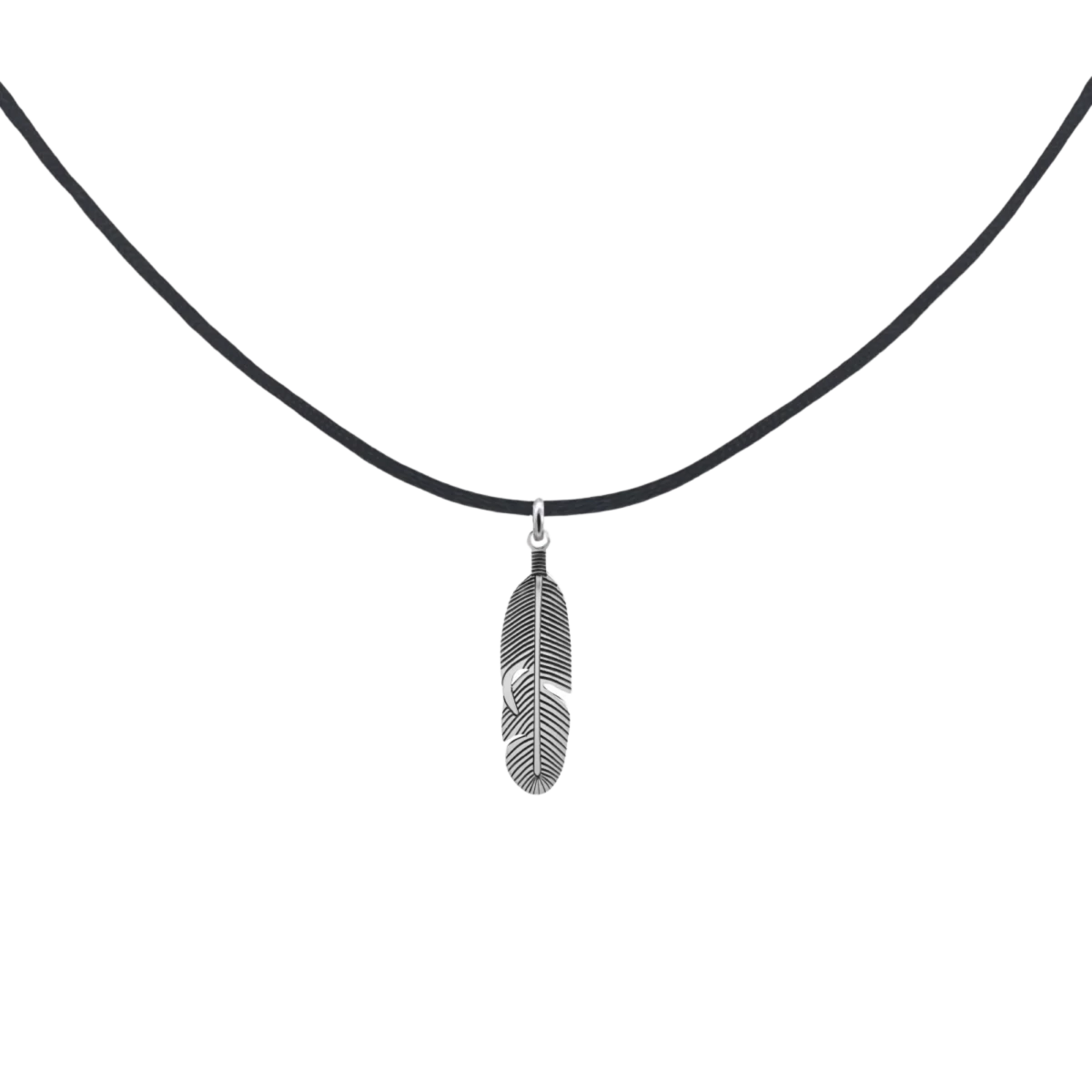 Vastag fonalra fűzött, toll formájú medál ezüst 925 zárral. Férfi kollekciónk nagy népszerűségnek örvendő darabja