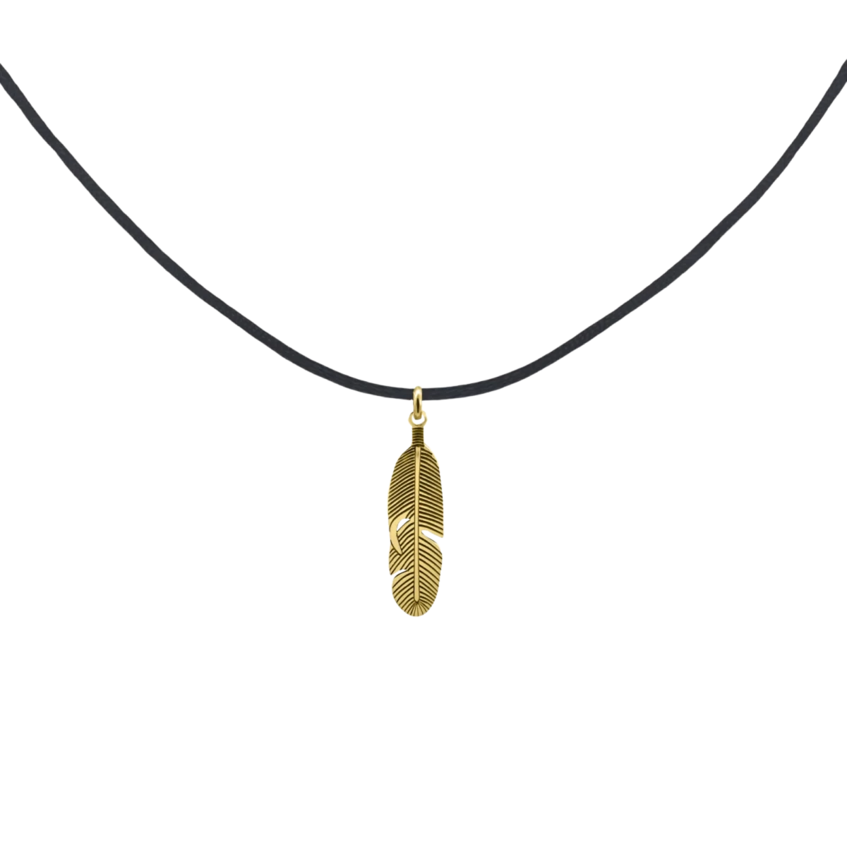 Vastag fonalra fűzött, toll formájú medál 14 karátos sárgaarany zárral. Férfi kollekciónk nagy népszerűségnek örvendő darabja