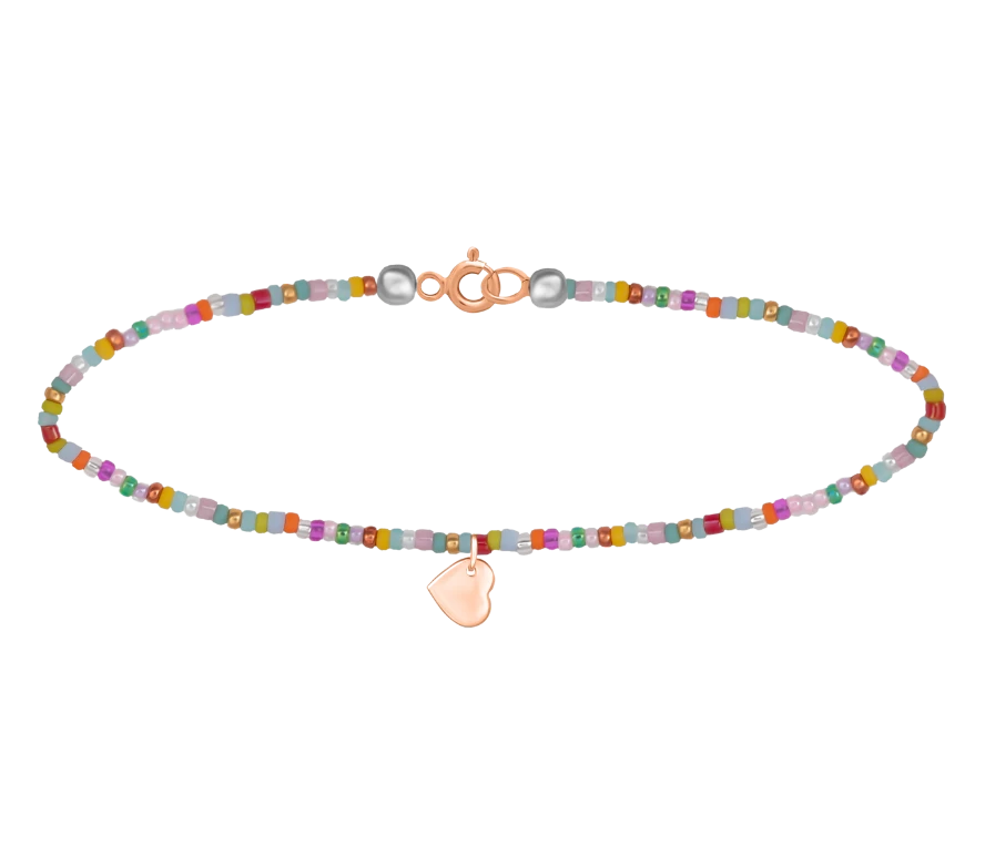 Színes Gyöngy Szív Vörös Arany 14K Bokalánc