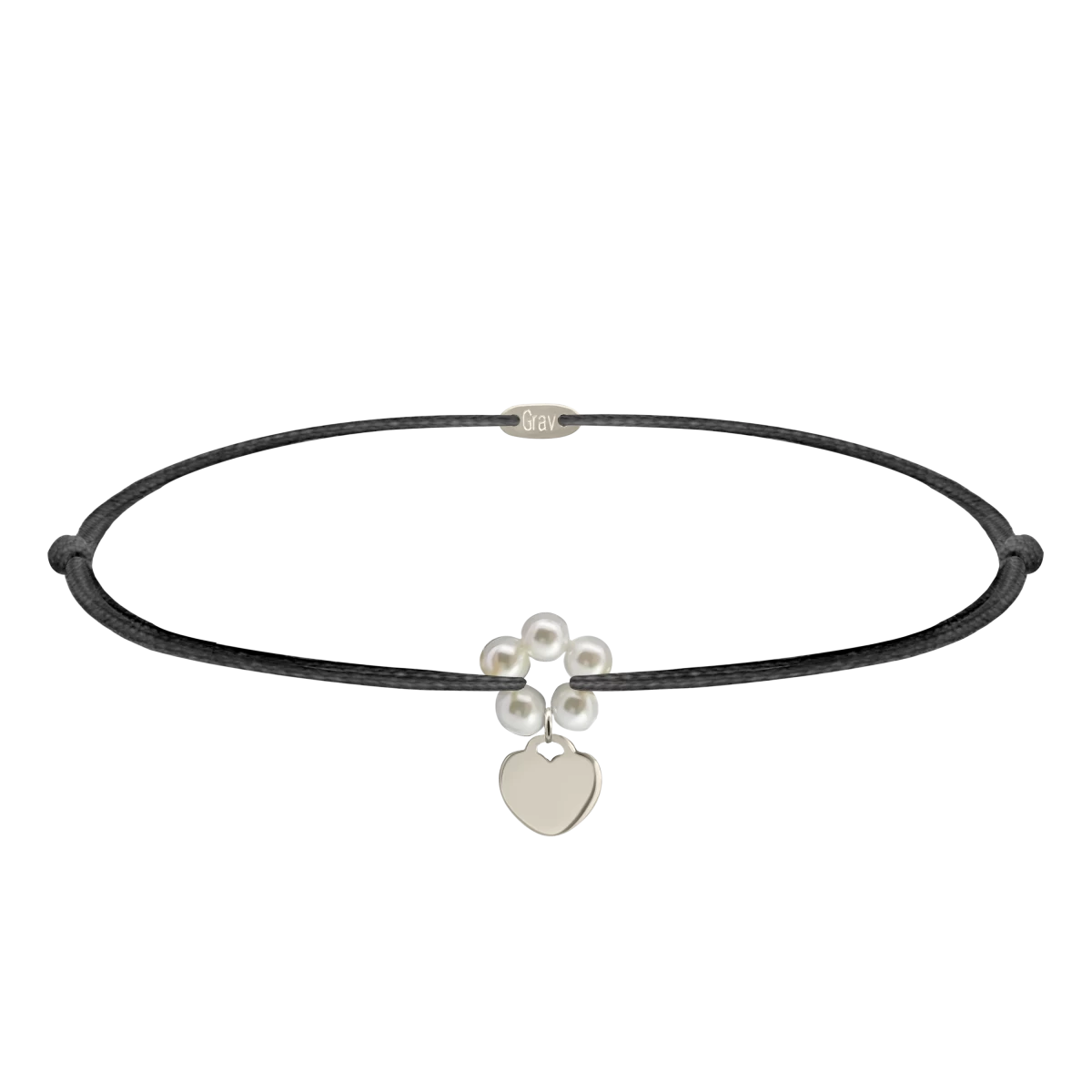 • Fazon: Gyöngy Szív Medállal Fehér Arany 14K Fonalas Karkötő