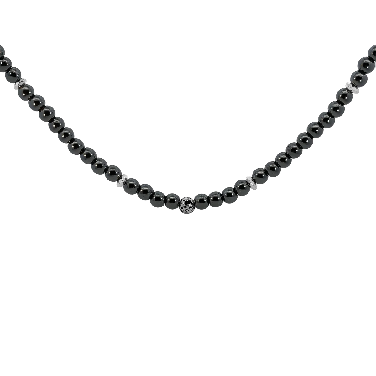 Válaszd ezt a többszörösen összetett, gardróbod alapdarabjaként szolgáló hematitból készült férfi nyakláncot, amelynek minden szemében fellelhető a természet ereje. Hematit és lávakő kiegészítőkkel, valamint egy ezüst 925 kockával kombinálva emeli kisugárzásod, miközben a hematit segít növelni a bátorságot és az önbizalmat.