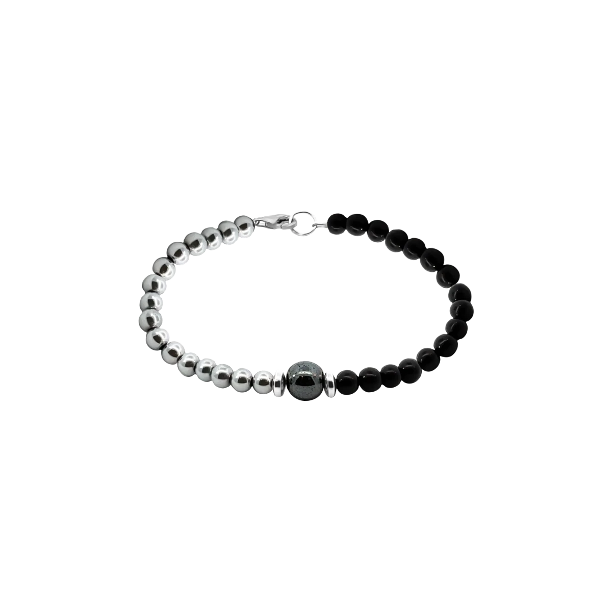 GRAV Hematite Black & White Ezüst 925 Ásvány Karkötő