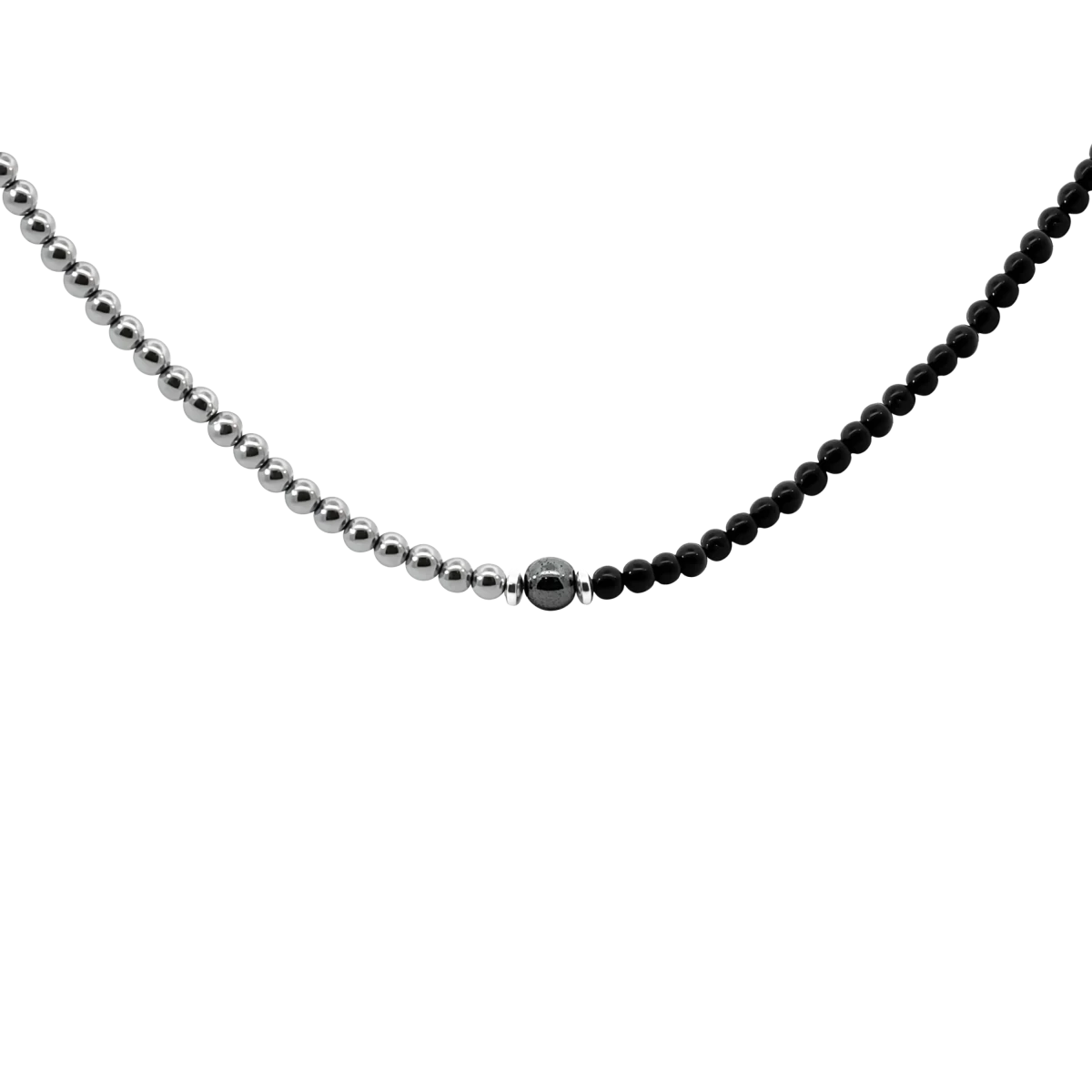 • Fazon: Hematit És Ónix Ásvány Ezüst 925 Férfi Nyaklánc