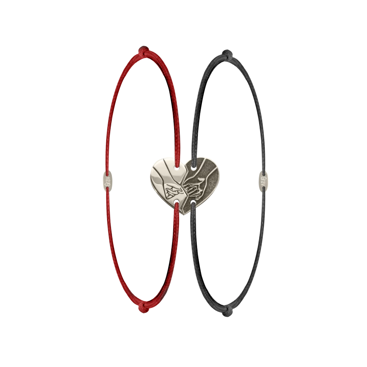 Viseld büszkén különleges fonalas karkötőd egyik párját, amely barátod vagy szerelmed csuklóján lévő, kisujjesküt ábrázoló szívmedállal együtt igazán szép szimbólumává válik kapcsolatotok mély kötelékének. Megjegyzésben jelezd számunkra, hogy melyik karkötőpárt milyen méretben és milyen színű fonallal szeretnéd!