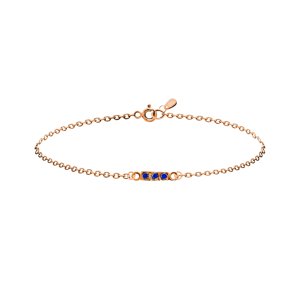 3 Kék Cirkónia Féldrágaköves Vörös Arany 14K Karkötő