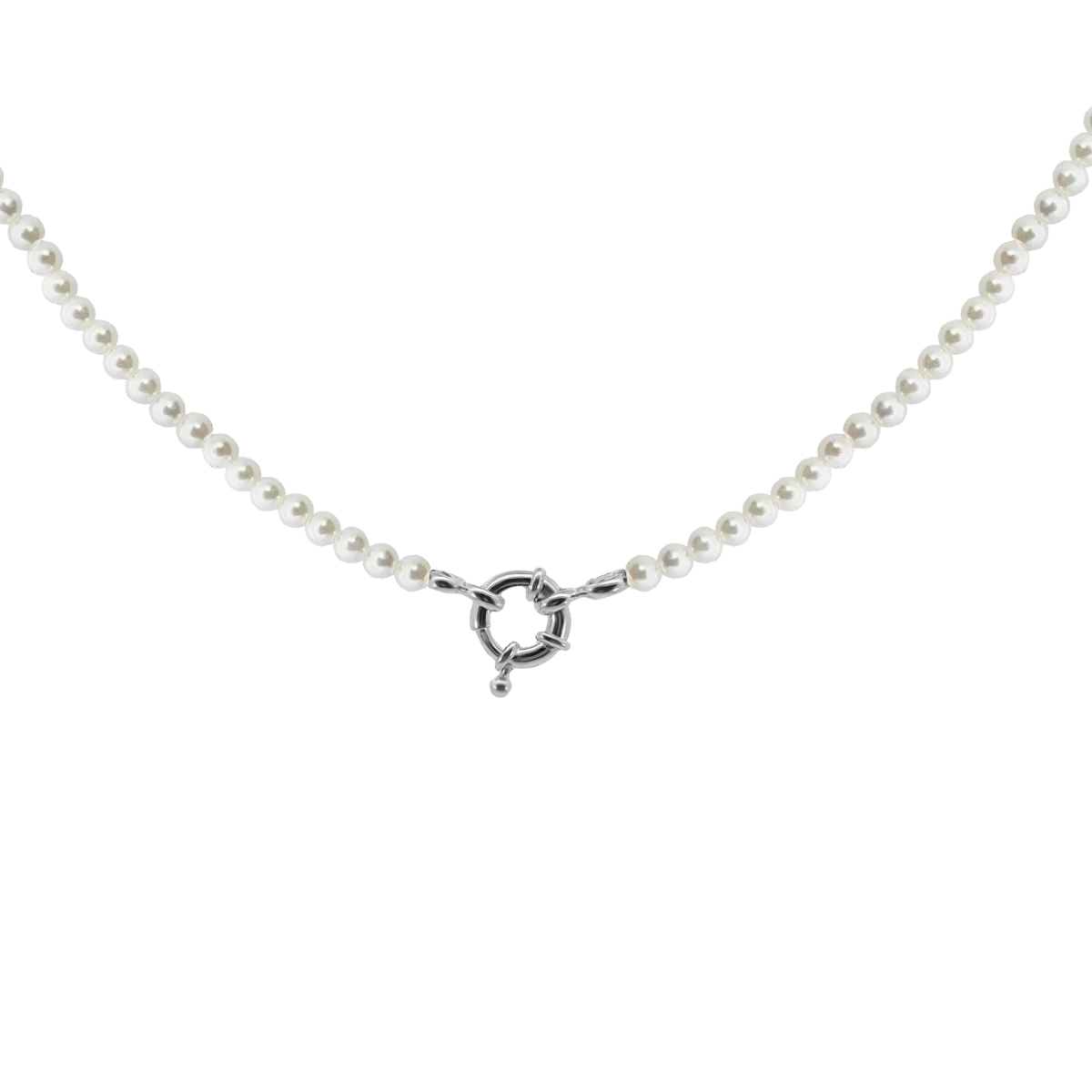 Egy nyaklánc, amely ötvözi a természetes szépséget és a modern dizájnt: a kis méretű gyöngyök és a feltűnő, látványos, ezüst zár együtt tökéletes választás azok számára, akik szeretnének kitűnni a tömegből.