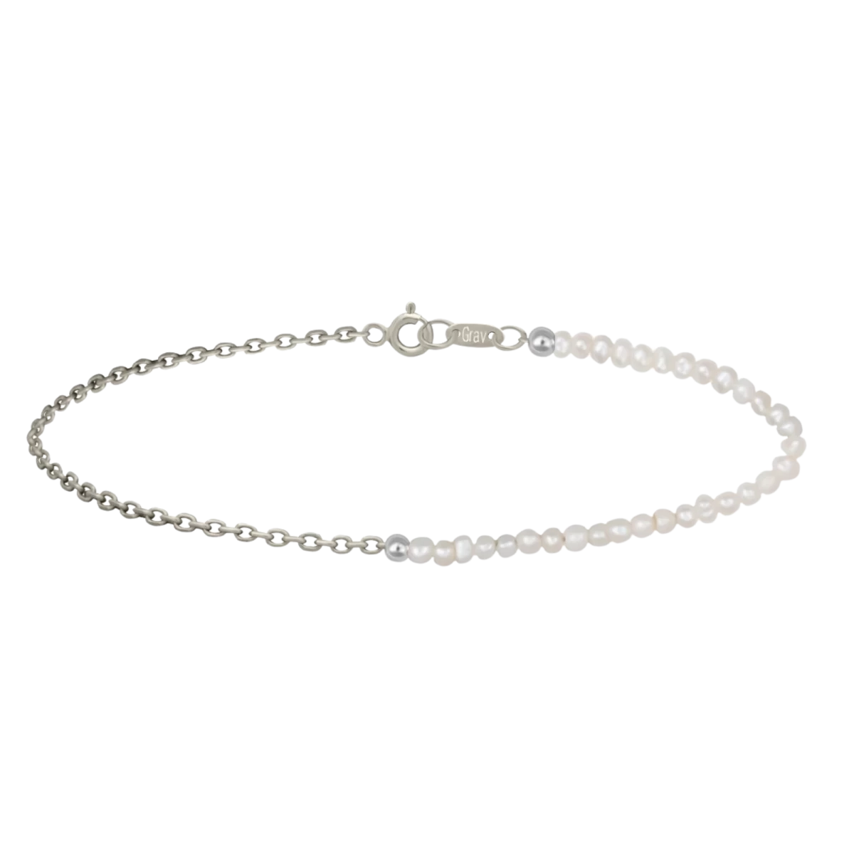 Kis Gyöngy Lánc Fehér Arany 14K Bokalánc