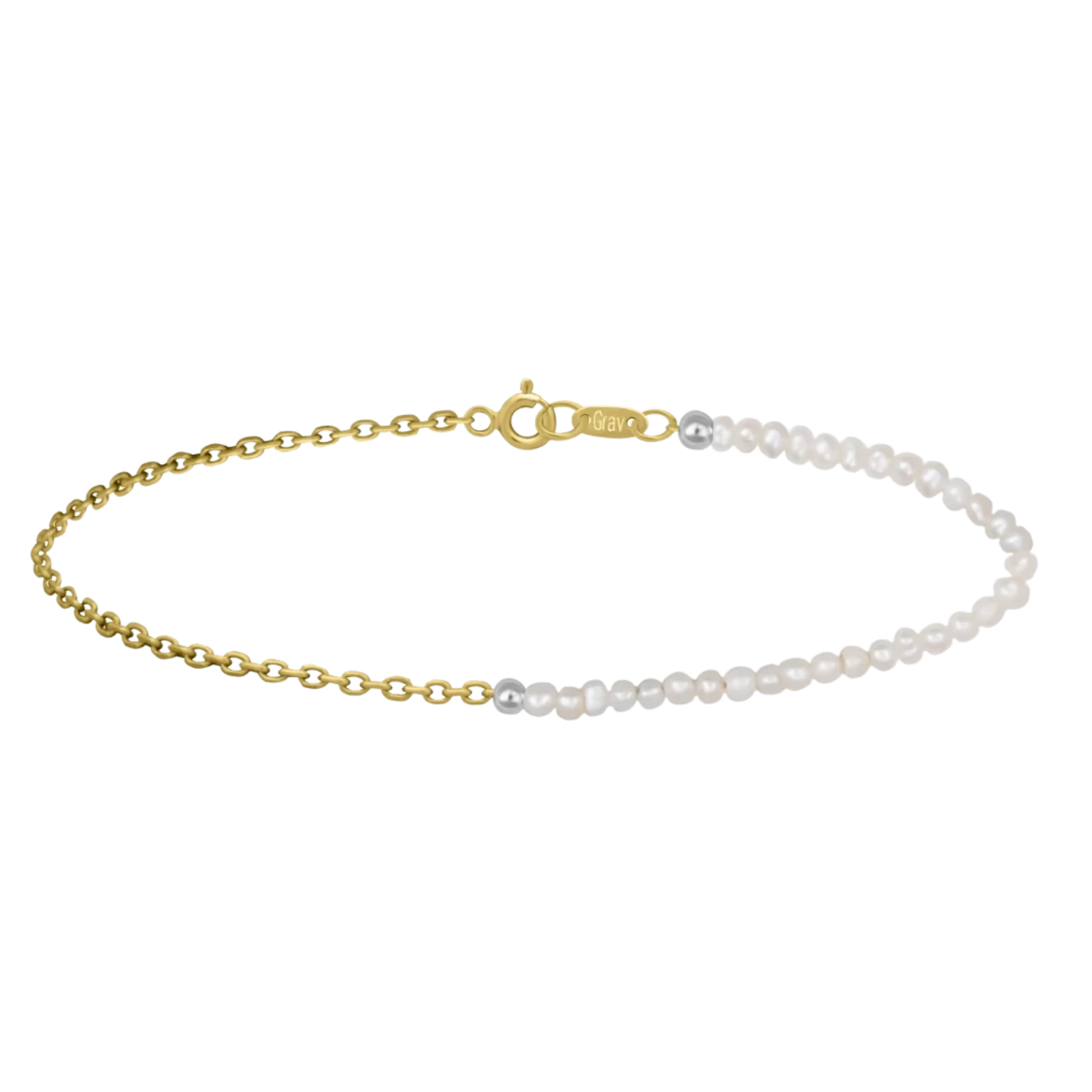 Kis Gyöngy Lánc Sárga Arany 14K Bokalánc