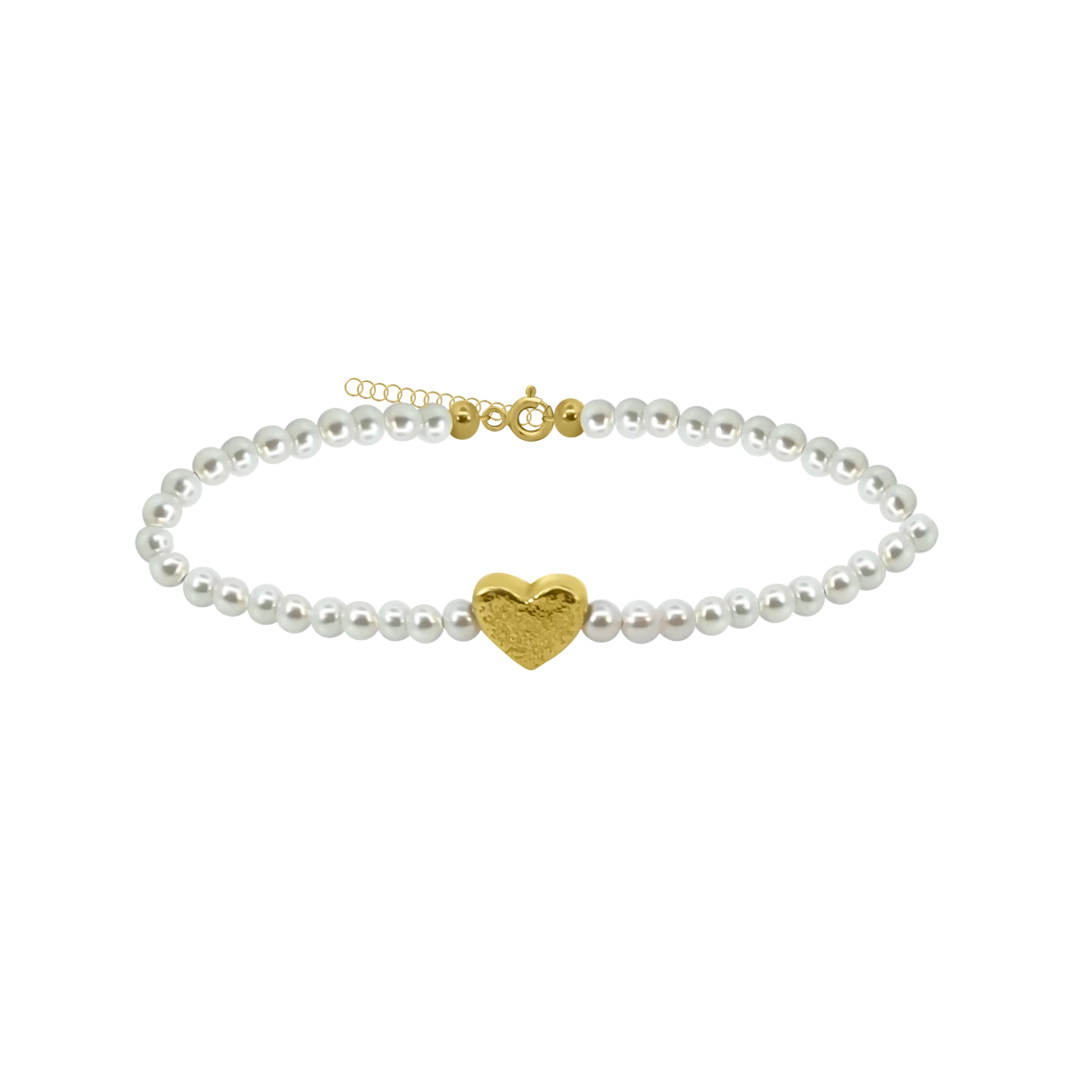 • Fazon: Kis Gyöngy Szív Sárga Aranyozott Ezüst 925 Karkötő