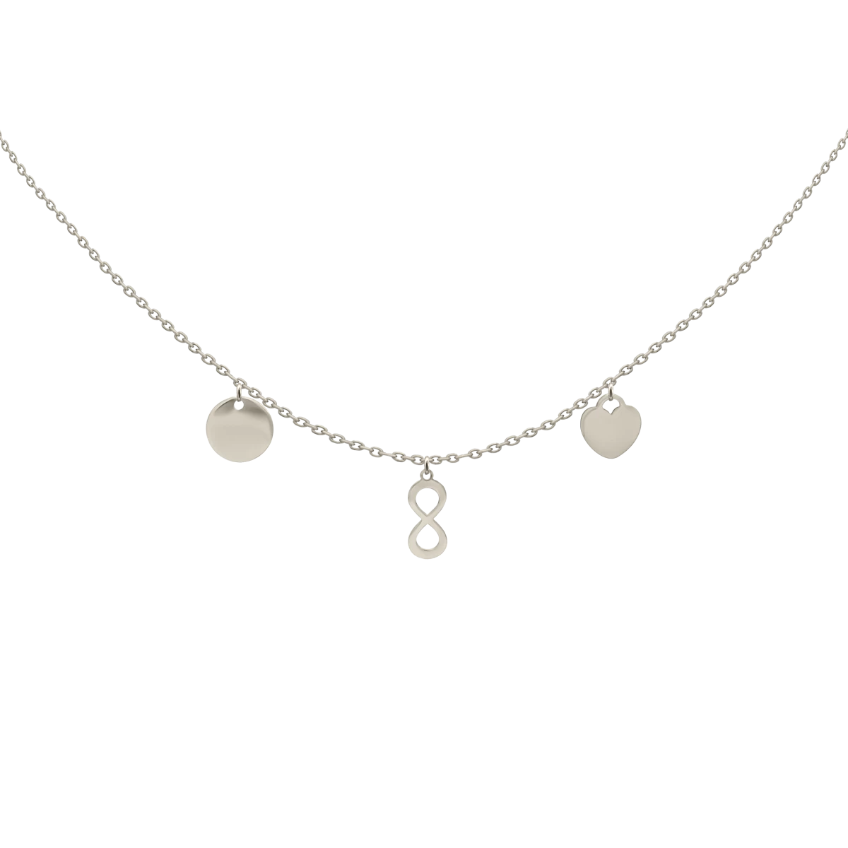 Fedezd fel a Harmony nyaklánc különleges világát, amelyet három ikonikus medál díszít: egy szív, egy kör és a végtelen jel. Ez a finom, mégis karakteres ékszer a szeretet, az egység és az örökkévalóság szimbólumait egyesíti egy elegáns kiegészítőben. A szív a szerelem és az érzelmek tisztaságát hordozza, a kör az élet teljességét és harmóniáját, míg a végtelen jelképezi az örök kapcsolatokat és határtalan lehetőségeket. Együtt tökéletes egyensúlyt teremtenek – pont úgy, ahogy a stílus és az egyéniség találkozik benned.