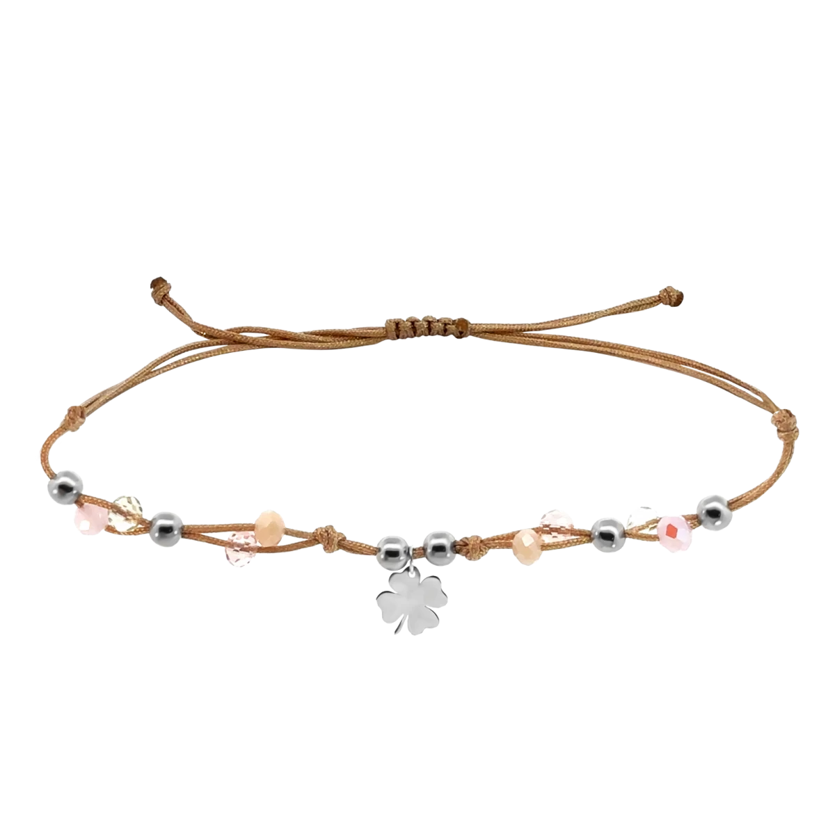 Makramé Színes Ásvány Lógós Lóhere Ezüst 925 Bokalánc