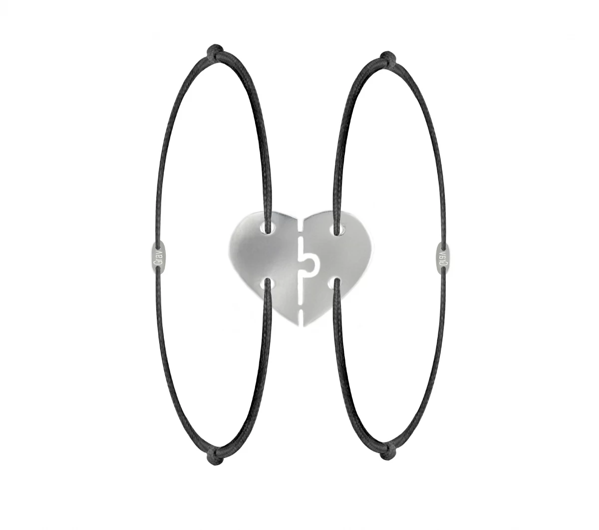 Szív puzzle páros karkötő, amelyben a két fél tökéletesen kiegészíti egymást. A karkötő egyik fele legyen nálad, a másikat add annak a személynek akit igazán szeretsz. Az ékszer tökéletes választás ajándékba, amit egyedivé tehetsz egy gravírozással. A karkötők mellé egy kis darab csiszolópapírt csomagolunk a kettétörést követően - esetlegesen - maradó élesebb részek kiigazítására.