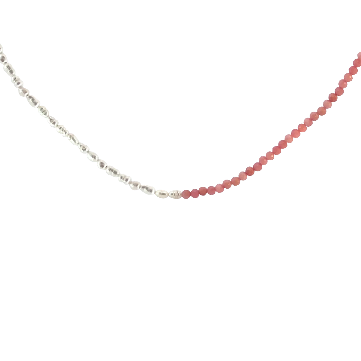 A rizsszem alakú fehér édesvízi gyöngyök és a pink opál finom, pasztelles árnyalata elegáns és nőies összhatást teremt, ahol a klasszikus fény és a lágy színvilág tökéletes harmóniában találkozik. A gyöngy a kifinomultságot, míg a pink opál a belső nyugalmat és érzelmi egyensúlyt szimbolizálja, így az ékszer nemcsak stílusos, hanem jelentéssel is bír. A lánchosszabbítónak köszönhetően a nyaklánc hossza könnyedén állítható, így kényelmesen illeszkedik viselőjéhez.