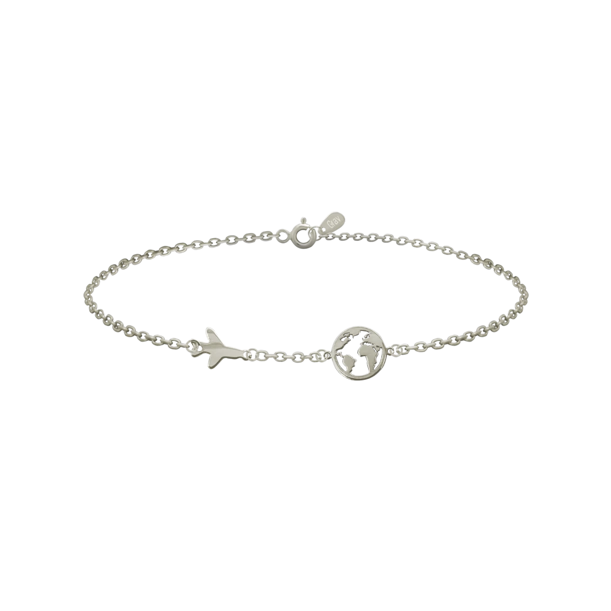 Repülő és Földgömb Fehér Arany 14K Karkötő