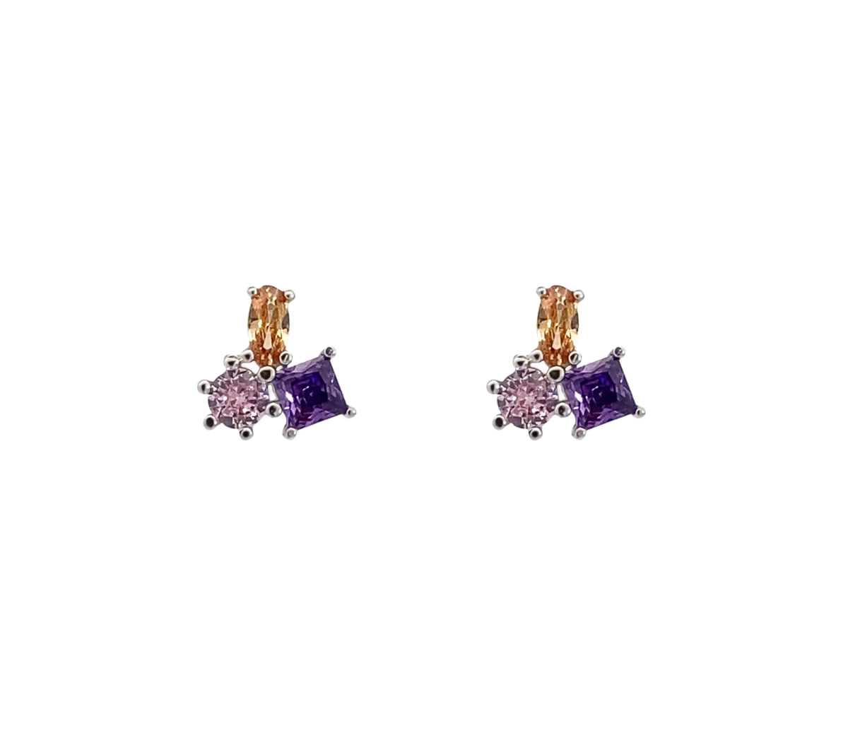 Limitált kollekció! A Rainbow kollekció lila, rózsaszín és narancssárga színekben pompázó darabja. 18 karátos fehérarannyal bevont, 925-ös finomságú ezüst fülbevaló, színes cirkónia kövekkel. A készlet erejéig elérhető! Csapj le rá elsőként, bővítsd vele nyári ékszergyűjteményedet!